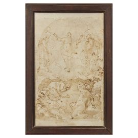 penna, inchiostro bruno e bistro su foglio riquadrato, mm 320x200