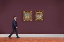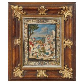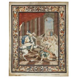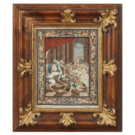 on the back of the frame, label with reference to provenance (watercolour with the Expulsion of Heliodorus); wax seal with reference to provenance (Biblical scene)