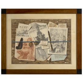 TROMPE L'OEIL WITH GLASSES AND PENCIL