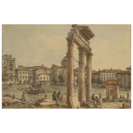 quattro disegni, penna, inchiostro bruno e acquarelli, mm 194x302; mm 300x415