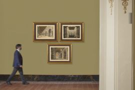 quattro disegni, penna, inchiostro bruno e acquerelli, mm 340x450 (ciascuna)