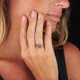 RUBY AND DIAMOND FLORAL RING IN GOLD AND SILVER