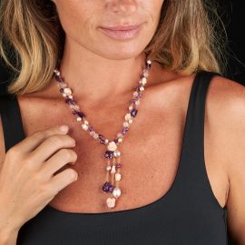 COLLANA CON PIETRE SEMIPREZIOSE PERLE E CORALLO ROSA