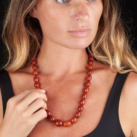realizzata ad un filo di sfere in ambra ovoidali e digradanti da mm 20x15 a mm 12x9 circa, lungh. cm 56, gr. 46
