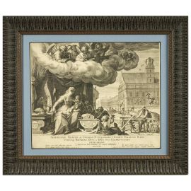 La tranquilla scena famigliare ideata da Sustris è messa in relazione con una veduta sullo sfondo della Monaco contemporanea quando la chiesa di San Michele era in costruzione. Pare che Sustris abbia collaborato al progetto di tale edificio contribuendo anche alla sua decorazione insieme ad altri artisti quali Pietro Candido.
