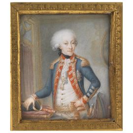 Lo sguardo fiero e impassibile ritratto sul volto di Carlo Emanuele IV di Savoia, nel piccolo formato qui presentato, espone tutta la maestosità di un giovane principe che ben presto si troverà a governare uno degli Stati più importanti della penisola italiana.