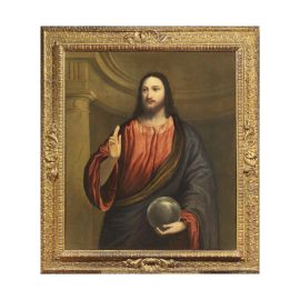 In particolare la nostra tela rievoca un motivo celebre di tale artista, il Cristo redentore, di cui si conoscono più versioni fra cui le più note sono conservate alla National Gallery di Londra e all’Accademia di Carrara di Bergamo.