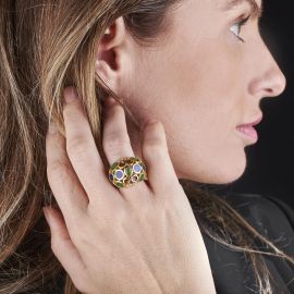 ENAMELLED DOME RING IN 18KT YELLOW GOLD