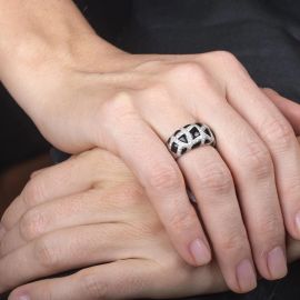 ONYX AND DIAMOND BAND RING IN 18KT WHITE GOLD