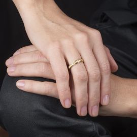 in oro giallo 18kt, impreziosito da sette diamanti taglio brillante per ct 0.20 circa, punzoni 750 e del fabbricante, mis. 13/53, gr. 3