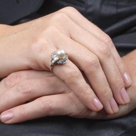 PEARL AND DIAMOND RING IN 18KT WHITE GOLD