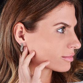 in oro bianco 18kt, realizzati a forma di fascia ondulata, impreziositi da diamanti taglio brillante per ct 0.20 circa, chiusura a farfallina, punzoni 750 e del fabbricante, lungh. cm 2, gr. 11 complessivi