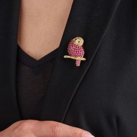 MULTI GEM OWL-SHAPED BROOCH IN 18KT YELLOW GOLD