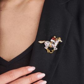 MULTI GEM JOCKEY-SHAPED BROOCH IN 18KT TWO TONE GOLD