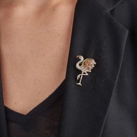 MULTI GEM FLAMINGO BROOCH IN 18KT TWO TONE GOLD
