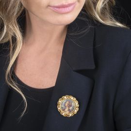 18KT YELLOW GOLD BROOCH WITH A MINIATURE