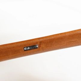 in legno, seduta imbottita e rivestita in tessuto nei toni del giallo
