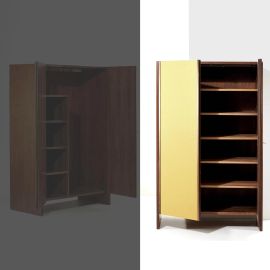 in legno, ante rivestite in tessuto nei toni del verde