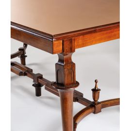 WOODEN TABLE, PINK GLASS TOP