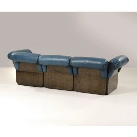 «SEATING SYSTEM» SOFA, WOODEN STRUCTURE, BLUE LEATHER UPHOLSTERY