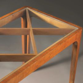 LOW TABLE, WOODEN STRUCTURE, GLASS TOP