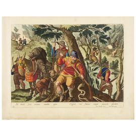 Le illustrazioni sulla caccia, incise da Collaert, Mallery e Cornelius Galle, sono universalmente considerate tra le più suggestive mai prodotte sull’argomento. La maggior parte delle tavole presentano vivida coloritura coeva. L’opera in fine volume, considerata la prima rappresentazione figurata dell’arte della seta, è particolarmente bella nel disegno e, nel nostro esemplare, nella colorazione. Schwerdt II, pp. 227-228: “From 1553-1571 [Stradanus] was employed by the Duke Cosimo de’ Medici in Florence, who commissioned him to make a number of designs for tapestries, representing fowling, fishing and hunting scenes, for the adornment of twenty rooms in the Palace of Poggio a Caiano. The present set of ‘Venationes’ was engraved from these beautiful and original compositions.”