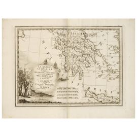In folio (428 x 307 mm); 34 pagine. Frontispizi incisi da Alessandro Mochetti su disegno di Tofanelli per il primo volume e da Demetrio Bragon per il secondo volume, 1 tavola non numerata e 125 carte geografiche a doppia pagina (alcuni piccoli strappi, alone al margine bianco del secondo volume, piccoli difetti qua e là.) Legatura coeva in piena pergamena con titolo in oro su tassello al dorso, tagli a spruzzo rosso (stanca). Nota di possesso di Luigi Franchetti.