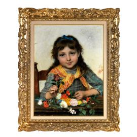 BAMBINA CON MAZZOLINO DI FIORIolio su tela, cm 59x45,5firmato lateralmente a destra