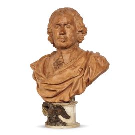 Il busto presenta un uomo di mezza età, dallo sguardo severo, rivolto idealmente verso un interlocutore, la fierezza del volto acuita da una corazza finemente cesellata, da un sobrio colletto allusivo a una camicia sottostante e da un panno drappeggiato sulle spalle. In base al confronto con altre realizzazioni scultoree oggi note è possibile riconoscere nella figura il ritratto di Oliver Cromwell, insigne condottiero e importante uomo di stato legato alla storia inglese. L’attribuzione allo scultore Francis Harwood spetta a Sandro Bellesi, basandosi soprattutto sul confronto con due marmi dedicati dallo scultore allo stesso personaggio, un busto già presso Cyril Humphris a Londra firmato e datato 1759 ed un’altra versione analoga, forse poco più tarda, conservata sempre a Londra, sculture con le quali – sempre secondo Bellesi - la nostra è da considerarsi il modello preliminare, mostrando la stessa sintassi descrittiva nella formulazione del volto, dei capelli, del colletto e dell' armatura, con qualche variante significativa nella disposizione del panneggio modificato nell'andamento delle pieghe e nella mancanza del nodo alla sommità della spalla sinistra.