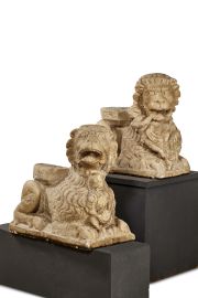 Lapicidal of Southern Italy, 14th century, a pair of stylophorous lions, marble