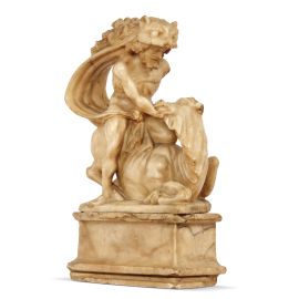 gruppo scultoreo in alabastro raffigurante l’episodio mitologico della lotta tra Ercole e Acheloo per la conquista della mano di Deianira, figlia di Eneo, re di Calidone, e di Altea; cm 37,5x22x11