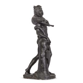in gesso dipinto ad imitare il bronzo, raffiguranti rispettivamente Fauno con capretto e Apollo del Belvedere, soggetti derivati dai modelli classici, tanto apprezzati nel periodo del "Grand Tour"; cm 61,5x27x21,5 e cm 69x30x32 rispettivamente