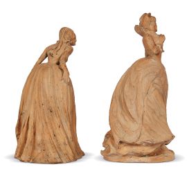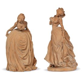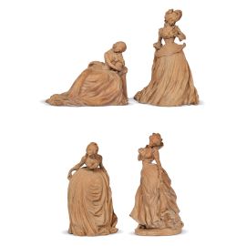 quattro sculture in terracotta, cm 41x21x20,5, cm 45x22,5x21,5, cm 45x32x21 e cm 29x38x21.