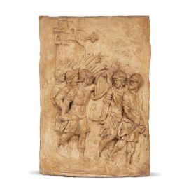 sette rilievi in terracotta di forma rettangolare raffiguranti l’Ingresso degli animali nell’arca, Mosè salvato dalle acque, Il bastone di Mosè mutato in serpente, Batuele e il messo di Abramo, Giuditta al campo di Oloferne, La testa di Oloferne issata sulle mura di Betulia, La morte dei primogeniti del Faraone. Secondo Andrea Bacchi queste formelle vanno collegate ad una delle più prestigiose imprese monumentali della scultura di fine Cinquecento nell’Italia centrale: la realizzazione delle tre porte in bronzo del santuario di Loreto, commissionate dal cardinale Antonio Maria Gallo, rettore del Santuario a partire dal 1587, in vista del giubileo del 1600. Tutte e tre le porte, eseguite rispettivamente da Antonio Calcagni, Antonio di Girolamo Lombardo e Tiburzio Vergelli, illustrano episodi dell’antico testamento; cm 22,5x15,8 circa ciascuno.