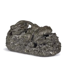 Florentine school, first half 17th century, a pair of toads with a serpent, Prato marble