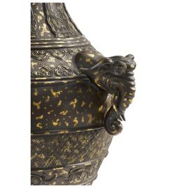 This refined bronze vase showcases a classical silhouette inspired by archaic ritual vessels. The surface is adorned with a rich gold-splashed patina, a decorative technique that enhances its visual appeal and imparts a sense of luxury.