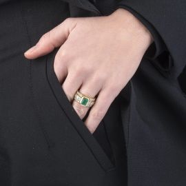 ANELLO A FASCIA CON SMERALDO E DIAMANTI
