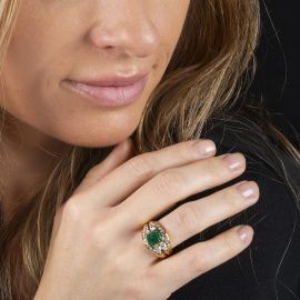 EMERALD AND DIAMOND RING IN 18KT YELLOW GOLD