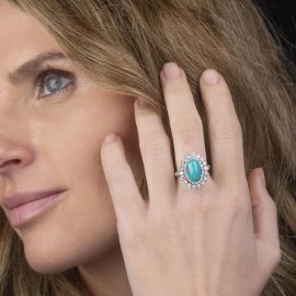TURQUOISE AND DIAMOND RING IN 18KT WHITE GOLD