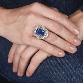 ANELLO FLOREALE CON ZAFFIRO CEYLON E DIAMANTI