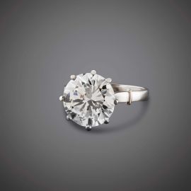 in oro bianco 18kt, diamante taglio brillante di ct 5.70, colore J, purezza Vvs1, mis. 14/54, gr. 4. Corredato di certificato IGN del 28/03/2025 attestante le caratteristiche.