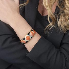 BRACCIALE RIGIDO A FASCIA CON DIAMANTI CORALLO E ONICE
