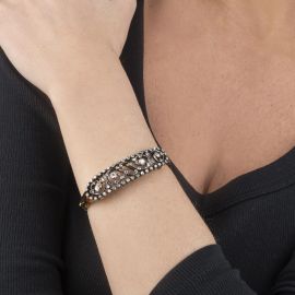in oro e argento, realizzato seguendo un motivo a tralci, impreziosito da diamanti taglio brillante e hui huit per ct 1.80 circa, punzone 18kt, diam. interno cm 5,5, circonferenza cm 15,5, gr. 23