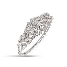 in oro bianco 18kt, realizzato a forma di tralcio fiorito, impreziosito da diamanti taglio brillante per ct 5 circa, diam. interno cm 5,5, circonferenza cm 6,5, gr. 26. Corredato di custodia.