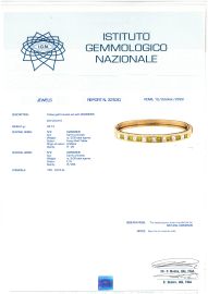 in oro giallo 18kt, impreziosito da otto diamanti bianchi taglio carré per ct 3 circa, alternati a otto diamanti gialli taglio carré per ct 3 circa, punzoni 750 e del fabbricante, dim. cm 6,5x5,5, circonferenza interna cm 16,5, gr. 43. Corredato di certificato IGN del 12/10/2022 attestante le caratteristiche.