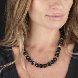 ONYX AND DIAMOND NECKLACE IN 18KT YELLOW GOLD