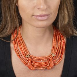 MULTI-STRAND CORAL NECKLACE IN 18KT YELLOW GOLD
