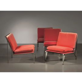 «867» ARMCHAIR, METAL STRUCTURE, RED FABRIC UPHOLSTERY