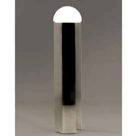 FLOOR LAMP, METAL STRUCTURE, GLASS LAMPSHADE