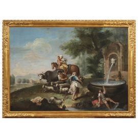 SHEPHERDS AND HERDS WITH A FOUNTAIN ON A LANDSCAPE